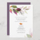 Elegante ensaio botânico de cor d'água, jantar quadros de convite para seu ensaio de cerimônia de casamento e jantar detalhes de celebração com uma borda de folhas de cor d'água em tons de verde, roxo e laranja. Os detalhes de seu evento são definidos em um tipo elegante de sans serif e script tradicionais. Perfeito para casamentos temáticos no outono, rústicos ou jardins. Para ver mais designs como esta visite o VG Invites no Zazzle