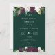 Branca de marfim elegante e floral botânico roxo de ameixa, convite para janto de ensaio de casamento. A placa apresenta design de tipografia branca moderna, estilo modelo e fundo cor verde esmeralda.