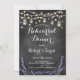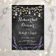 Convite para Janto de ensaio. Design elegante em preto e branco com padrão de quadro-negro, luzes de cordas de fadas e frascos de mason. Possui fonte de script na moda e flores de lavanda. Envie-me uma mensagem se precisar de mais personalização.