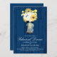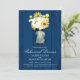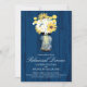 Anúncio do Janto de ensaio de casamento. Fundo no design de madeira de celeiro azul-rustica Marinho com um Mason Jar cheio de margaridas brancas, girassóis e Billy Balls amarelo. Se o esquema de cores não é o que você queria, por favor me avise e eu recriarei isso para você, mas por favor, entre em contato comigo antes de fazer um pedido. E-mail paula@labellarue.com Feliz Planejamento de Casamentos! Certifique-se de escolher seu estoque de papelão favorito para que ele seja impresso.