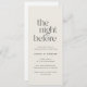 Hospedar em estilo com este convite de janto de ensaio digital que inclui a frase "a noite anterior" em tipografia ousada e moderna. Projetado para entrega fácil de texto ou e-mail, este convite sem papel combina conveniência com elegância de eterno — perfeito para o planejamento de última hora ou celebrações sustentáveis.