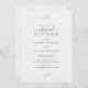 Um convite de casamento minimalista, baseado em tipografia elegante, com janto de ensaio, com um plano de fundo branco de pelúcia e uma tipografia clássica de cinza escura personalizável com sotaque floral botânico.