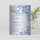 © Designs socialitas. Um elegante convite azul real e prata com lindas espirais decorativas de canto prontas para serem personalizadas para o seu evento especial. O estilo da fonte, o texto e o tipo de papel podem ser alterados. Precisa de ajuda para personalizar ou adicionar produtos com este design? Por favor, não hesite em contactar Designs socialitas.