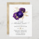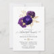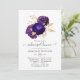 Convite jantado para o ensaio de casamento floral violeta e roxo com acentos de mármore de ouro de folha falsa personalizável para o seu evento específico.