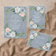 Concursos para o Janto de ensaio Pêssego Cor-de-Rosa Dourada Dusty Azul - design apresenta um fundo azul poeirento com uma moldura de ouro cortada em eucalipto e verde com elementos florais em cinza/branco, azul poeirento e cor-de-rosa/pêssego. Exibir a coleção correspondente nesta página para localizar produtos correspondentes.
