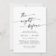 Este convite de janto de ensaio preto e branco é perfeito para uma noite minimalista antes do ensaio de casamento. O design boêmico preto-e-branco, moderno, apresenta uma caligrafia rústica simples com um estilo único, mas clássico. Perfeito para qualquer estação: primavera, verão, outono ou inverno.