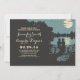 Este convite para jantas de ensaio é sobre natureza e amor. Convidado encantado para a sua noite de frente d'água antes do casamento. Características do convite: casal sentado no banco perto do lago cercado por floresta e árvores antigas.