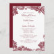 O Elegante convite para janto de ensaio de rendas românticas, design, apresenta um fundo branco nítido, com um cadinho vermelho ornamentado nos cantos, com um fundo branco nítido. Personalize o design com seus detalhes em letras de tendências e script em vermelho. As costas combinam em vermelho romântico. Para obter melhores resultados, substitua os detalhes do modelo com seus próprios detalhes, deixando espaço entre os parágrafos, como no exemplo. Envie um email para invitationsuites@gmail.com com perguntas ou solicitações de cores personalizadas.