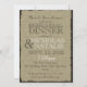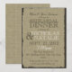 O convite para jantas de ensaios no campo russo com o olhar de burlap e texto castanho escuro.
