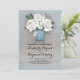Pedra de mason azul pintada e flores brancas, convites para janto de ensaio em campo rústico
