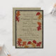 Folhas coloridas, vermelhas e laranja, sobre o aspecto impresso da burlap. Personalize para ser tão formal ou informal quanto desejar.