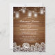 Este convite de janto de ensaio rústico apresenta um fundo de madeira de celeiro rústico com um delicado design de rendas brancas ao longo da fronteira inferior. O design de cima inclui frascos de pedras e luzes de cordas brilhantes; perfeito para uma festa de janto de ensaio ao ar livre.