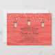 Perfeito para um Casamento ao estilo country ou talvez você apenas ame Mason Jars para qualquer evento! Design de uma madeira russa e Mason Jars se encheram pendurados em uma corda de luzes piscando. Uma madeira de celeiro de cor CORAL. Se tiver alguma dúvida sobre este design ou quiser uma mudança de cor, envie-me um e-mail para paula@labellarue.com Também verifique se o Wedding Suite, INVITATION, RSVP, RECEPÇÃO e Cards CONVIDADAS correspondem!