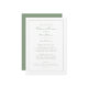 O clássico janto de ensaio de casamento design apresenta um roteiro elegante em verde-sábio romântico num fundo branco nítido. A parte de trás do convite corresponde a & é verde estável de cor. A redação é adequada para um evento tradicional e formal de casamento religioso. Use o simples modelo moderno para substituir o texto de exemplo por seus detalhes. Solicitações de cor personalizadas aceitas. Entre em contato comigo em invitationsuites@gmail.com ou use o link de mensagem nesta lista se você tiver dúvidas ou precisar de assistência com este ou qualquer dos nossos designs.