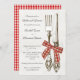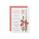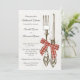 Convide seus convidados para um janto de ensaio confortável e casual com este convite de janto de ensaio que inclui pratos de prata e um pano de fundo vermelho de mesa.