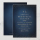 Monograma sofisticado de casal e brilho dourado falso em fundo azul escuro de marinho. Simples e elegante. Os convites para janto de ensaio de excelentes para casamento clássico moderno, e casamento vintage. Veja todas as peças correspondentes na coleção.