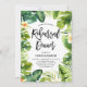 Convide a família e amigos para o seu evento com este convite de janto de ensaio tropical. Apresenta a ilustração aquosa de monstera, palmeiras, bananeiras e outras culturas tropicais com plumeria amarela. Este convite é perfeito para jantadas de ensaio de verão e luaus. Personalize adicionando nome, data, hora, endereço e outros detalhes do evento. Você pode personalizar ainda mais esse convite mudando o padrão tropical para uma foto ou qualquer outra imagem.