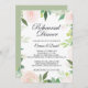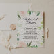 Este moderno convite para janto de ensaio floral tropical é perfeito para um ensaio de casamento de destino. Essa design encantadora e atraente apresenta flores verdes e rosa deliciosas, bem arrumadas em quadros geométricos, evocando felicidade e beleza natural.