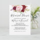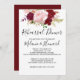 Este convite para janto de ensaio romântico e tropical vermelho é perfeito para um ensaio de casamento rústico. O design de marsala artístico bordo apresenta rosas de aquarela, verdes, cor-de-rosa, burgundy e blush, combinados com verde, bem arrumados num buquê de flores gracioso e radiante.