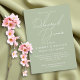 A caligrafia branca com guião branco sage green Janta convite para ensaio. Este janto de ensaio moderno e refinado é perfeito para casais que procuram um toque subestimado, mas elegante. A design apresenta uma estética minimalista sofisticada, mostrando principalmente a frase "Janto de ensaio". Esta redação é reproduzida numa bela e fluente caligrafia de escrita branca que dança num fundo verde de sábio sólido. A parte de trás do convite mantém esse sentimento limpo e moderno, apresentando um campo sólido e ininterrupto do mesmo adorável sábio verde. Este convite é ideal para convidar seus entes queridos a comemorar as festividades pré-casamento com estilo.