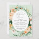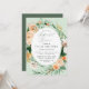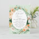 Lindos convites de janto de ensaio com um elegante tom pastel neutro e neutro molhado em moldes florais botânicos em tons suaves de pêssego, laranja, pincel suave, amarelos e muitos tons de verde de sábio verde a verdes brilhantes e profundos. Seus detalhes personalizados são exibidos em um elevado layout tipográfico que coloca o convidado de honra em frente e no centro.