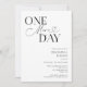 Convite minimalista de janto de ensaio de casamento com texto tipográfico que diz "mais um dia". O fundo é branco.