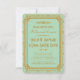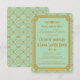 Estes convites de janto de ensaio apresentam uma paleta de cor de ouro com hortelã e brilho, uma estrutura geométrica e outros detalhes estilísticos inspirados no Art Deco e nos vinte e poucos anos ruidosos. Você pode personalizar os campos de texto de exemplo de acordo com o seu gosto.