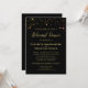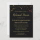 Este belo convite de janto de ensaio de casamento apresenta um elegante, mas caprichoso, design de estrelas rosa e douradas, brilho ou faíscas com texto dourado sobre fundo preto. Bem-vindos aos seus convidados festas de casamento para partilharem o vosso janto de ensaio com estes maravilhosos convites a preto e ouro.