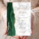 A borda esquerda deste elegante e moderno convite para o ensaio de casamento apresenta uma esmeralda verde aquarela agate borda com falsa brilho dourado. O texto personalizável combina manuscrito preto e dourado, fontes em copperplate e itálico em uma cinza e fundo de mármore branco. O verso apresenta um design verde e dourado correspondente.