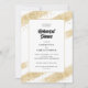 Este elegante convite de janto de ensaio de casamento mostra traços de pincel de ouro falsa no fundo.