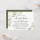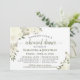Este belo convite de janto de ensaio é rústico e elegante. Apresenta uma design de aquarela pintada manualmente com rosas, flores e jardim verde em tons de branco, marfim e creme. Ele tem informações sobre o ensaio de casamento, assim como sobre o janto comemorativo que se segue. Perfeito por manter a noiva informada sobre todas as festividades pré-casamento.