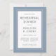Este convite simples e minimalista de janto de ensaio apresenta o texto em placa de cinza e itálico num retângulo branco, enquadrado por uma fina linha branca sobre um fundo azul empoeirado. O reverso é azul empoeirado sólido.