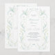 Convite para Janto de ensaio com um quadro de galhos elegantes com folhas azuis verdes. Folhas delicadas de abstrato desenhadas à mão sobre fundo branco. Histórica da natureza floral romântica. ramos de folhas abstrato naturais. Primavera ou design floral de verão. Um enredo botânico. Convite para Janto de ensaio de botânica verde macia. Coleção de Folhas Verdes.