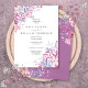 Apresentando bonito buquês cor-de-rosa e lavandas de flor silvestre, este convite de janto de ensaio pode ser personalizado com as suas informações de janto de ensaio. Projetado por Thisnotme©