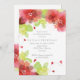 Flores vermelhas e cor-de-rosa deliciosas, convite jantado para o ensaio de casamentos florais de primavera, com flores bonitas em tons de vermelho, rosa e marsala, folhas em verde e texto em cinza. Esta elegante e moderna design faz parte de um jogo de casamento e é uma modelo perfeita e personalizável para um casamento de primavera ou verão.