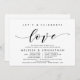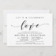 Anuncie, alegremente, o seu estilo com o nosso moderno tema negro e branco design (Vamos Celebrate Love) janto de ensaio de casamento e poste o cartão de convite para comemoração de casamento. É ideal para casais que decidiram celebrar a noite antes do seu grande dia, juntamente com o brunch poste do casamento. Com seu design sofisticado, mas lúdico, este convite certamente define o tom de um evento inesquecível. O cartão de convite apresenta o moderno design de script clássico, adicionando um toque de elegância do eterno à sua celebração. Projetado por TeeshaDerrick