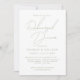 A caligrafia de script faz um convite para Janto de ensaio verde. Ponha o tom para as suas festividades pré-casamento com este convite elegante e convidativo para a caligrafia do guião Whimsical Modern Sage Green and White Casal Retest Jantar Invitation. Este belo convite serve para anunciar seu janto de ensaio, e ele o faz com graça e charme. O texto "Janto de ensaio" é apresentado numa caligrafia caprichosa e fluente de guião, tudo numa ligeira tonalidade de sábio verde a branco, transmitindo um sentido de elegância natural. A parte traseira da placa é um branco sólido.