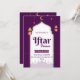 Convite para Janto Iftar Dourado e Branco Roxo. Ramadã é mês sagrado para muçulmano. Se você quiser Convidar sua família e amigos para um janto de fotos ou uma festa de fotos, este é o convite perfeito para você. Este convite também está disponível como um convite digital, para enviar para casa digital ou para impressão!