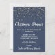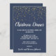 Este janto de natal azul moderno e minimalista é perfeito para uma festa de Natal ou jantar de férias. A design apresenta um confete de ouro festivo com elegante caligrafia branca sobre fundo azul.
