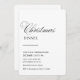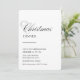 Convide seus convidados com sofisticação de eterno usando este convite de janto de Natal com script elegante. Com caligrafia luxuosa aliada à tipografia serif clássica, essa refinada design dá o tom perfeito para uma celebração formal de feriado. Com a sua disposição minimalista e a inscrição a preto na moda, este cartão é ideal para jantas de Natal, reuniões festivas ou festas de férias. Personalize facilmente com seus detalhes de eventos, informações de RSVP e local para um convite elegante e memorável.