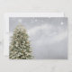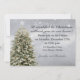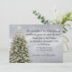 Janto de Natal em queda elegante Convocação sobre fundo azul-claro com uma árvore de Natal com luzes apagadas e flocos de neve brancos está pronto para ser personalizado com seus detalhes. Itens correspondentes também estão disponíveis.