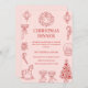 Celebre os feriados em estilo com este elegante convite vermelho em branco para janto de Natal cor-de-rosa. Apresentando delicadas ilustrações festivas, desenhadas à mão, de uma coroa, ornamentos, canas doces, um cavalo de balanço e uma árvore de Natal, esta design moderna é perfeita para receber um janto de férias ou uma reunião festiva. O fundo suave com sotaques vermelhos ricos cria uma aparência quente e na moda, que é fácil de personalizar com seus próprios detalhes de evento. Ideal para festas familiares de Natal, jantas de férias de escritório ou reuniões festivas com amigos. Compare este convite com artigos de papelaria de feriado para uma celebração sazonal completa e coordenada.