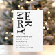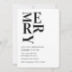 Faça uma declaração ousada nesta época de férias com este convite minimalista de janto de Natal. Apresentando uma FELIZ impressionante da tipografia negra em um layout vertical moderno, esta design limpa e sofisticada é perfeita para aqueles que amam um estilo de feriado moderno e elegante. Ideal para jantas de Natal, reuniões de férias ou festas, este convite único combina simplicidade com elegância. Personalize com seus próprios detalhes de evento para um cartão de comemoração de feriado de na moda.