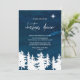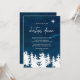 Esta carta de convite jante de natal estrelada é perfeita para um evento de feriado religioso. A design apresenta uma cena de floresta de inverno com um céu a aquarela marinho e uma estrela brilhante de Belém.