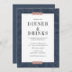 Jogue um janto de negócios com este janto elegante e este convite para bebidas. Ele apresenta um fundo botânico azul marinho e tipografia clássica.