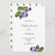 Violetas roxas com design verde. Aquarela floral botânica no estilo tradicional. Convite de janto de páscoa. Personalize o nome, data e hora, local e muito mais. O verso tem um padrão de folha verde, mas pode ser removido. Belo roteiro e texto. A pintura de flor original foi inspirada por uma de minhas plantas.