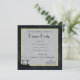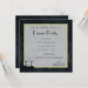 Uma textura preta de pedra marmoreada de rico. O centro do convite é um quadrado branco semitransparente com uma borda dourada. Fonte Chic e um par de copos de vinho dão-lhe alguma elegância.