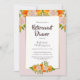 Um convite de festas de janto de aposentadoria floral, cor-de-rosa e laranja.