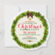 Morangos vermelhos legantes e coroa de natal evergreens, modelo de convite jante. sotaques Dourados de estrelas e arco vermelho.