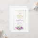 Um convite de festas de janto floral, cor-de-rosa e azul, bordado em ouro.